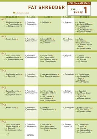 - Fat Shredder: High protein, low carb, moderate fat